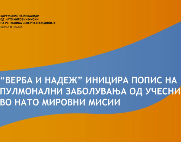 “ВЕРБА И НАДЕЖ” ИНИЦИРА ПОПИС НА ПУЛМОНАЛНИ ЗАБОЛУВАЊА ОД УЧЕСНИЦИ ВО НАТО МИРОВНИ МИСИИ